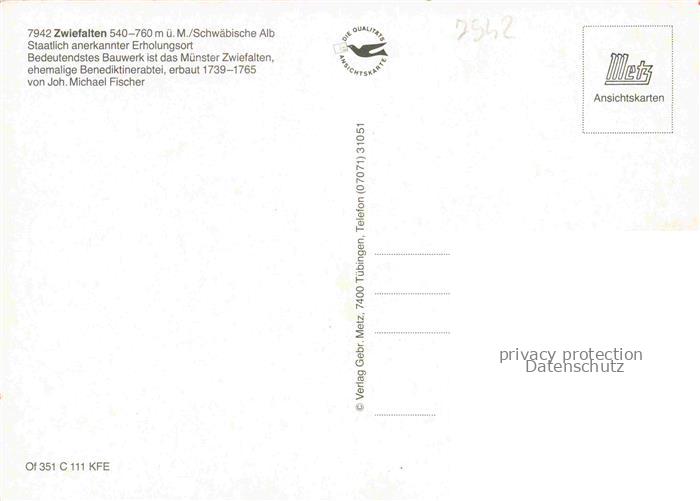 74052604 Zwiefalten Wuerttemberg Panorama Blick gegen Muenster ehemalige Benediktiner-Klosterkirche 18. Jhdt. postalisch nicht gelaufen Erhaltung siehe scans [FriedD77] KatCode: 11110008415085