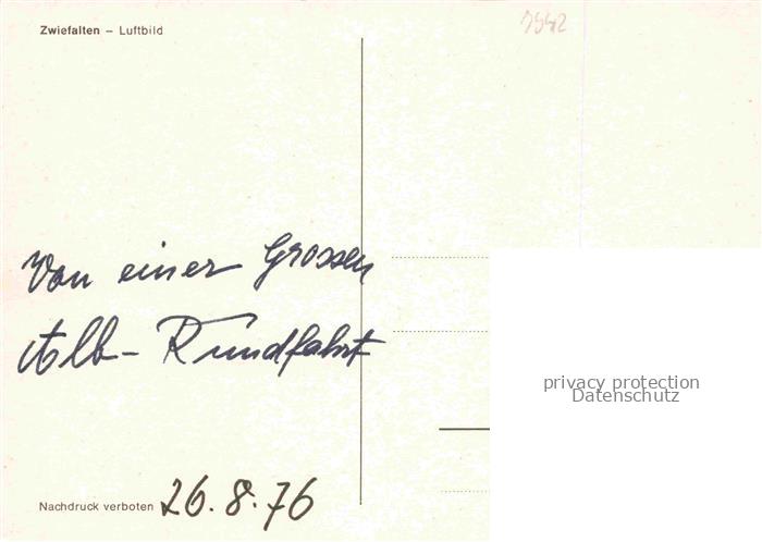 74052597 Zwiefalten Wuerttemberg Panorama postalisch nicht gelaufen Fliegeraufnahme Erhaltung siehe scans [FriedD77] KatCode: 11110008415085