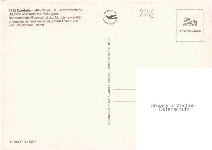 74051019 Zwiefalten Wuerttemberg Stadtpanorama Muenster Unserer Lieben Frau postalisch nicht gelaufen Erhaltung siehe scans [FriedD77] KatCode: 11110008415085
