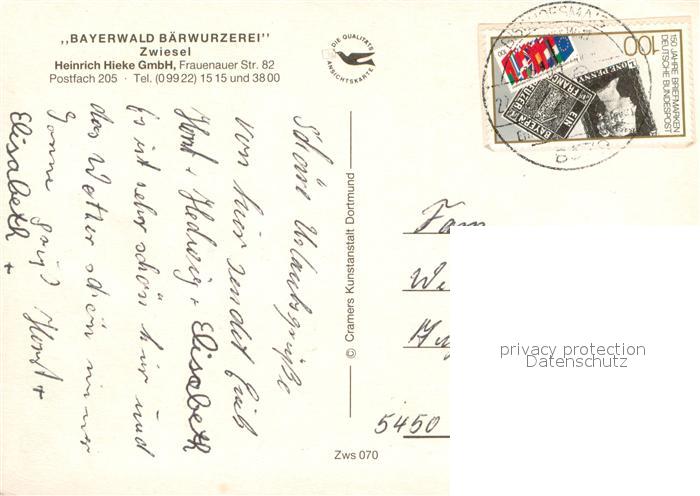 73636615 alte Postkarte Zwiesel Bad Gottleuba-Berggiesshuebel Bayerwald Baerwurzerei Probierstube Destillierblase Ortsansicht postalisch gelaufen Erhaltung siehe scans [WerneD78] KatCode: 11110014287015