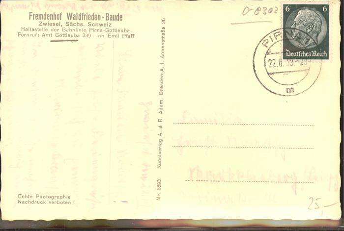 41331069 Zwiesel Bad Gottleuba-Berggiesshuebel Fremdenhof Waldfrieden-Baude KatCode 11110014287015