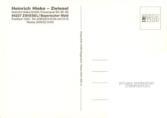 73050838 Zwiesel Niederbayern Baerwurzerei Hieke postalisch nicht gelaufen Erhaltung siehe scans [KathaD81] KatCode: 11110009276148