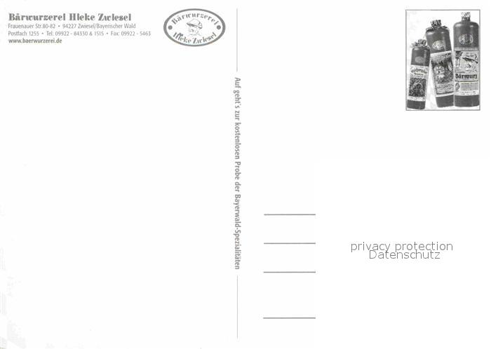 72895219 Zwiesel Niederbayern Baerwurzerei Hieke postalisch nicht gelaufen Erhaltung siehe scans [AndreD76] KatCode: 11110009276148