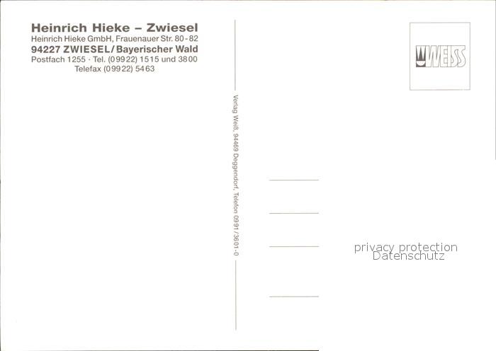 72505500 Zwiesel Niederbayern Baerwurzerei Hieke postalisch nicht gelaufen Erhaltung siehe scans KatCode: 11110009276148