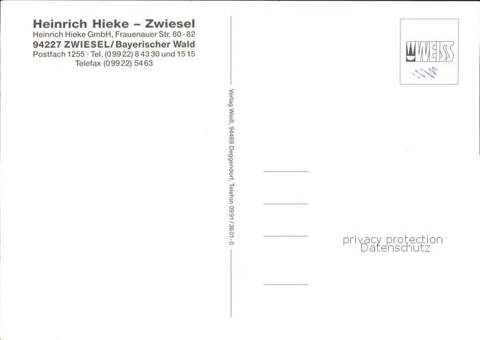 71909076 Zwiesel Niederbayern Baerwurzerei Hieke Zwiesel postalisch nicht gelaufen Erhaltung siehe scans KatCode: 11110009276148