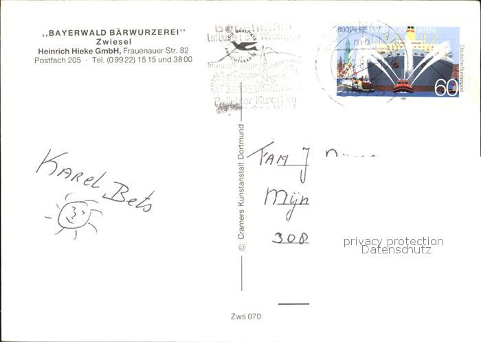 72450916 alte Postkarte Zwiesel Niederbayern Bayerwald Baerwurzerei postalisch gelaufen Erhaltung siehe scans KatCode: 11110009276148