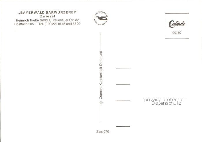 72245040 Zwiesel Niederbayern Bayerwald Baerwurzerei postalisch nicht gelaufen Erhaltung siehe scans KatCode: 11110009276148