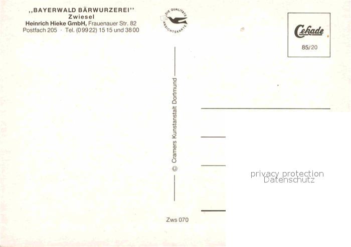 72700107 Zwiesel Niederbayern Bayerwald Baerwurzerei postalisch nicht gelaufen Erhaltung siehe scans [KathaD79] KatCode: 11110009276148