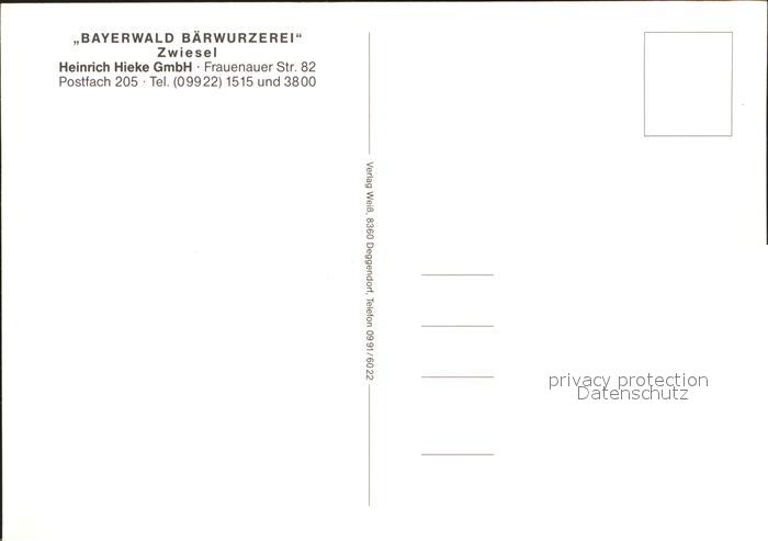 72138288 Zwiesel Niederbayern Bayerwald Baerwurzerei Bayerischer Wald Wappen postalisch nicht gelaufen Erhaltung siehe scans KatCode: 11110009276148
