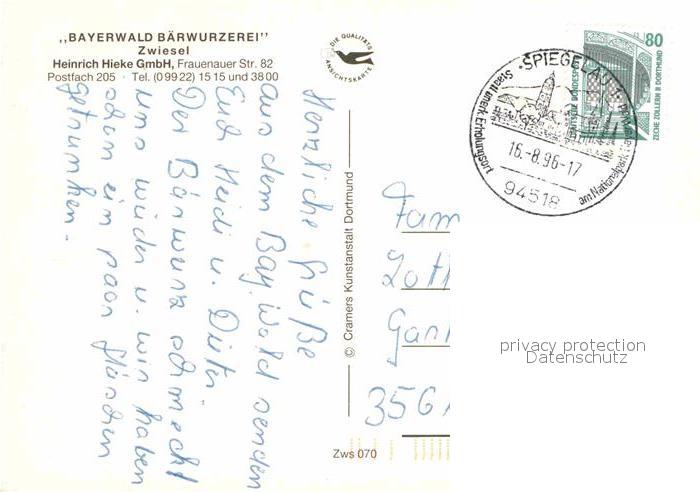 72751035 alte Postkarte Zwiesel Niederbayern Bayerwald Baerwurzerei Destillierblase Panorama postalisch gelaufen Erhaltung siehe scans [AndreD76] KatCode: 11110009276148