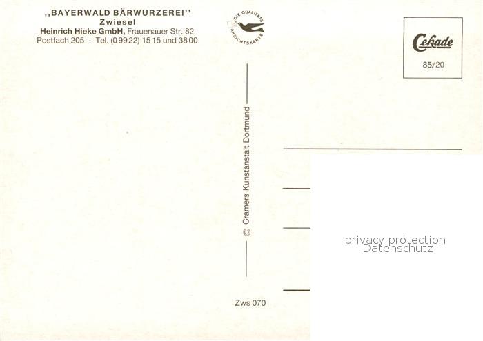 73787350 Zwiesel Niederbayern Bayerwald Baerwurzerei Probierstube Destillierblase Wappen postalisch nicht gelaufen Erhaltung siehe scans [FriedD77] KatCode: 11110009276148