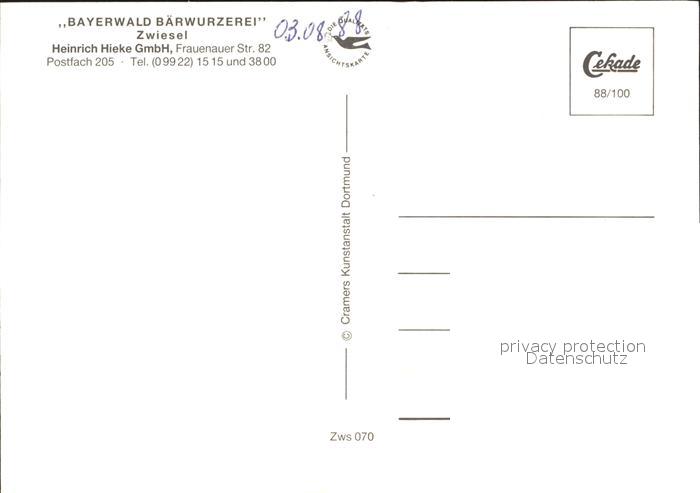 72279892 Zwiesel Niederbayern Bayerwald Baerwurzerei Wappen postalisch nicht gelaufen Erhaltung siehe scans KatCode: 11110009276148