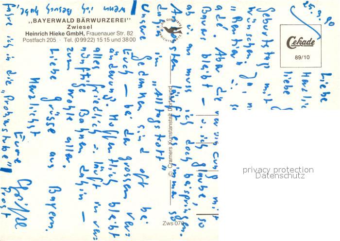 73065211 Zwiesel Niederbayern Bayerwald Baerwurzerei Wappen Ortsansicht mit Kirche postalisch nicht gelaufen Erhaltung siehe scans [FriedD77] KatCode: 11110009276148