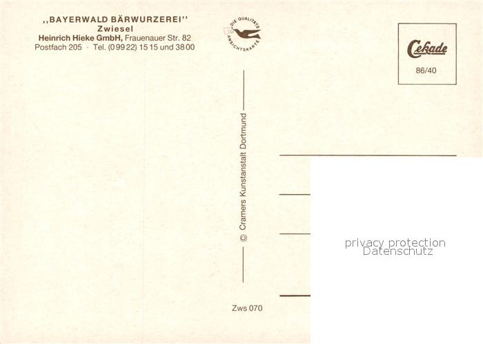 73569201 Zwiesel Niederbayern Bayerwald Baerwurzerei Wappen Stadtpanorama postalisch nicht gelaufen Erhaltung siehe scans [FriedD77] KatCode: 11110009276148