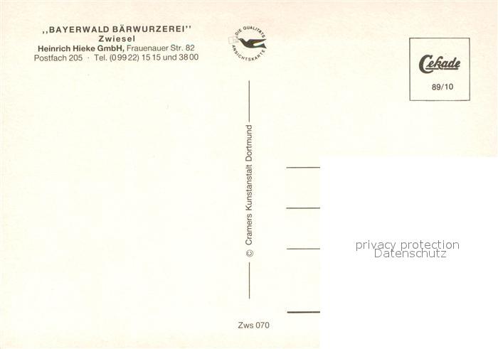 73686897 Zwiesel Niederbayern Bayerwald Baerwurzerei Zwiesel Destillierblase Probierstube Ortsansicht postalisch nicht gelaufen Erhaltung siehe scans [WerneD78] KatCode: 11110009276148