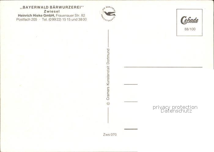 72512854 Zwiesel Niederbayern Bayerwald Baerwurzerei Zwiesel Probierstube Destillierblase Stadtblick postalisch nicht gelaufen Erhaltung siehe scans KatCode: 11110009276148