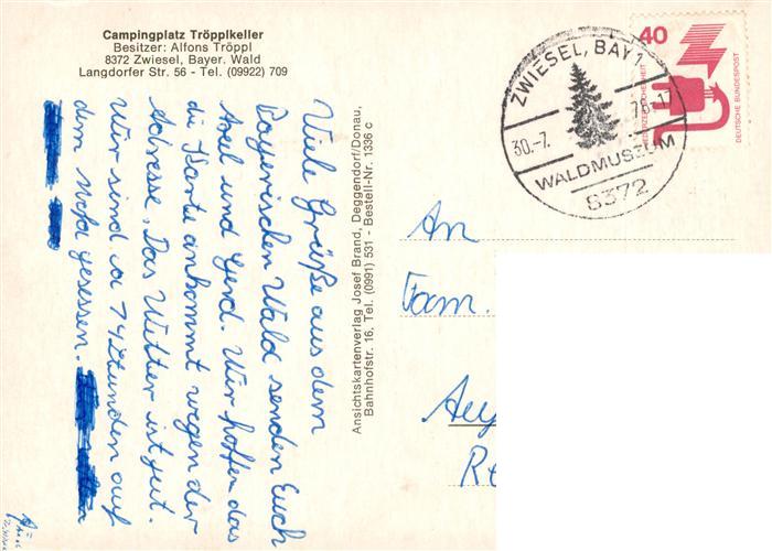 73886134 alte Postkarte Zwiesel Niederbayern Campingplatz Troepplkeller Arbersee mit Arber Gaststaette postalisch gelaufen Erhaltung siehe scans [FriedD77] KatCode: 11110009276148