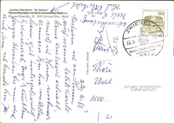 72610728 alte Postkarte Zwiesel Niederbayern Caritas Altenheim Sankt Helena postalisch gelaufen Erhaltung siehe scans [AndreD76] KatCode: 11110009276148