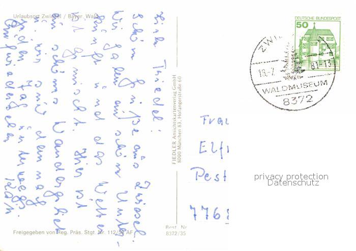 72850921 alte Postkarte Zwiesel Niederbayern Fliegeraufnahme postalisch gelaufen Erhaltung siehe scans [NatalD47] KatCode: 11110009276148
