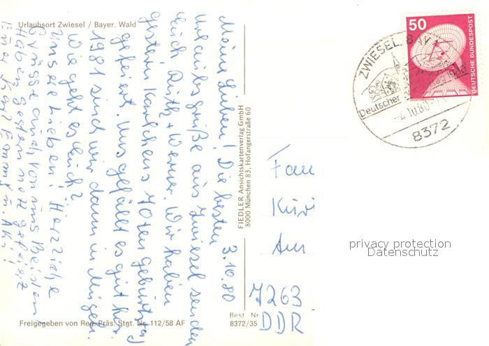 73719385 alte Postkarte Zwiesel Niederbayern Fliegeraufnahme Gesamtansicht postalisch gelaufen Erhaltung siehe scans [LiesaD40] KatCode: 11110009276148