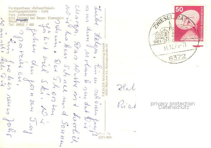 73636799 alte Postkarte Zwiesel Niederbayern Forstgasthaus Schwellhaeusl Ausflugsgaststaette Cafe Winterimpressionen Bayerischer Wald postalisch gelaufen Erhaltung siehe scans [FriedD77] KatCode: 11110009276148