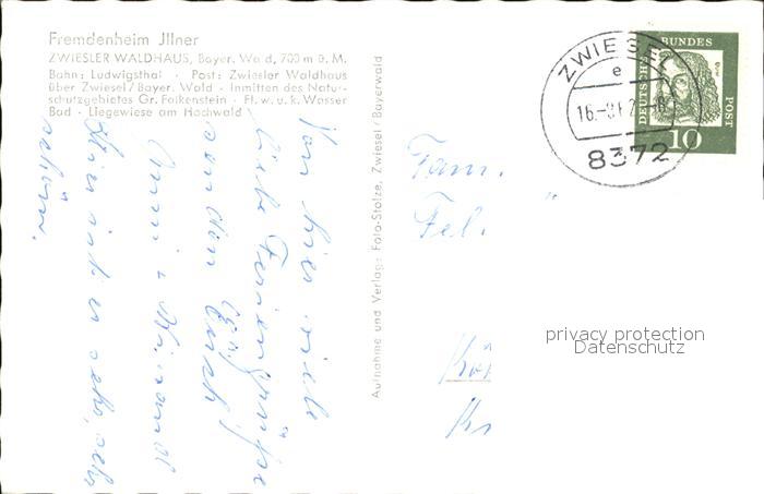 72418603 alte Postkarte Zwiesel Niederbayern Fremdenheim Jillner postalisch gelaufen Erhaltung siehe scans KatCode: 11110009276148