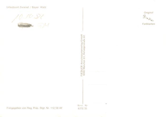 73904781 Zwiesel Niederbayern Panorama Bayerischer Wald postalisch nicht gelaufen Fliegeraufnahme Erhaltung siehe scans [FriedD77] KatCode: 11110009276148