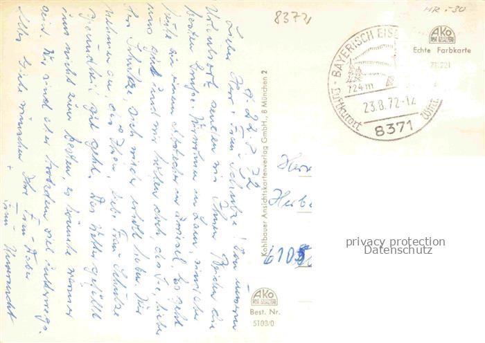 74152754 alte Postkarte Zwiesel Niederbayern Panorama Rathaus Stadtplatz Regen mit Falkenstein Schwimmbad postalisch gelaufen Erhaltung siehe scans [WerneD78] KatCode: 11110009276148