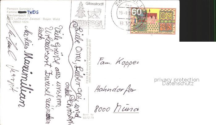 72146423 alte Postkarte Zwiesel Niederbayern Pension Sonnleitn postalisch gelaufen Erhaltung siehe scans KatCode: 11110009276148