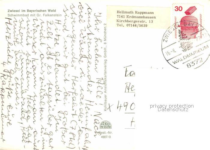 72917278 alte Postkarte Zwiesel Niederbayern Schwimmbad Grosser Falkenstein postalisch gelaufen Erhaltung siehe scans [KathaD81] KatCode: 11110009276148