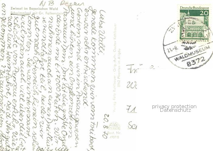 72893703 alte Postkarte Zwiesel Niederbayern Schwimmbad mit Falkenstein postalisch gelaufen Erhaltung siehe scans [AndreD76] KatCode: 11110009276148