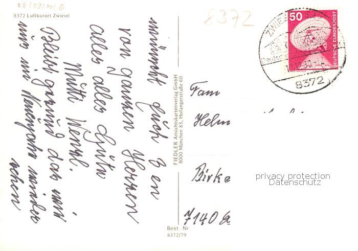 73860736 alte Postkarte Zwiesel Niederbayern Stadtzentrum zur Weihnachtszeit Nachtaufnahme postalisch gelaufen Erhaltung siehe scans [FriedD77] KatCode: 11110009276148