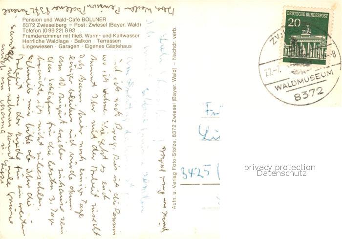 73073434 alte Postkarte Zwieselberg Bayern Pension Waldcafe Bollner Bayerischer Wald postalisch gelaufen Erhaltung siehe scans [FriedD77] KatCode: 11110009276148
