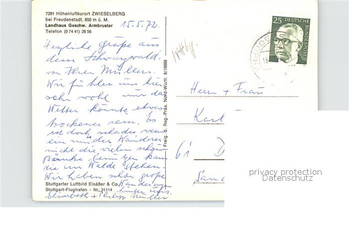 72612665 alte Postkarte Zwieselberg Freudenstadt Fliegeraufnahme postalisch gelaufen Erhaltung siehe scans [AndreD76] KatCode: 11110008237028