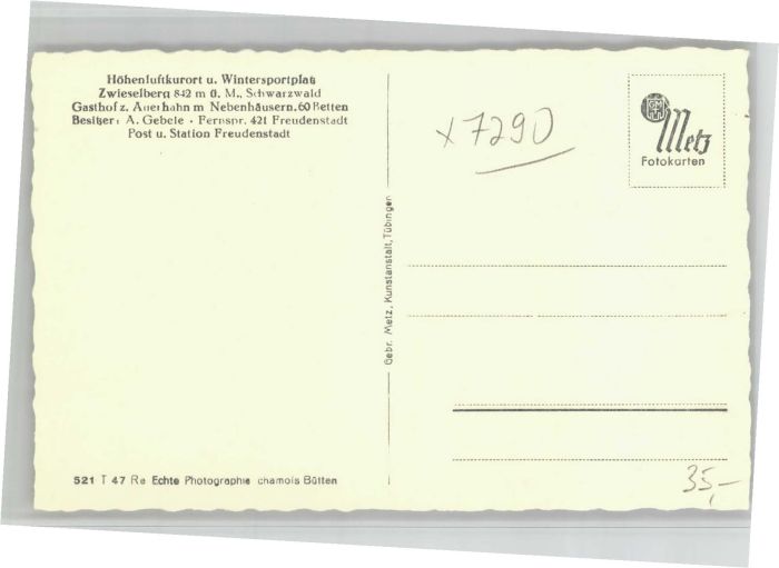 40709869 Zwieselberg Freudenstadt Gasthof zum Auerhahn KatCode 11110008237028