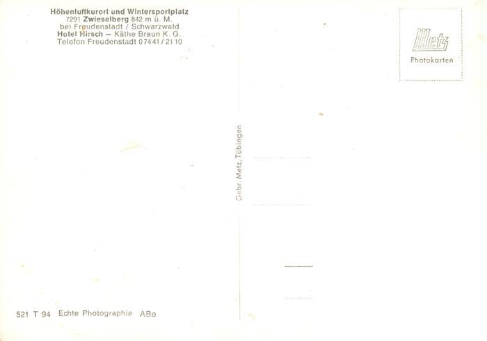 73872318 Zwieselberg Freudenstadt Hotel Hirsch postalisch nicht gelaufen Erhaltung siehe scans [WerneD78] KatCode: 11110008237028