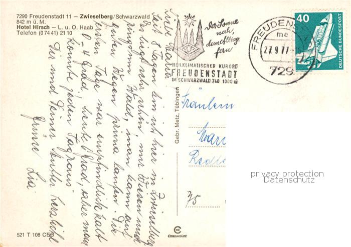 73835756 alte Postkarte Zwieselberg Freudenstadt Hotel Hirsch postalisch gelaufen Erhaltung siehe scans [WerneD78] KatCode: 11110008237028