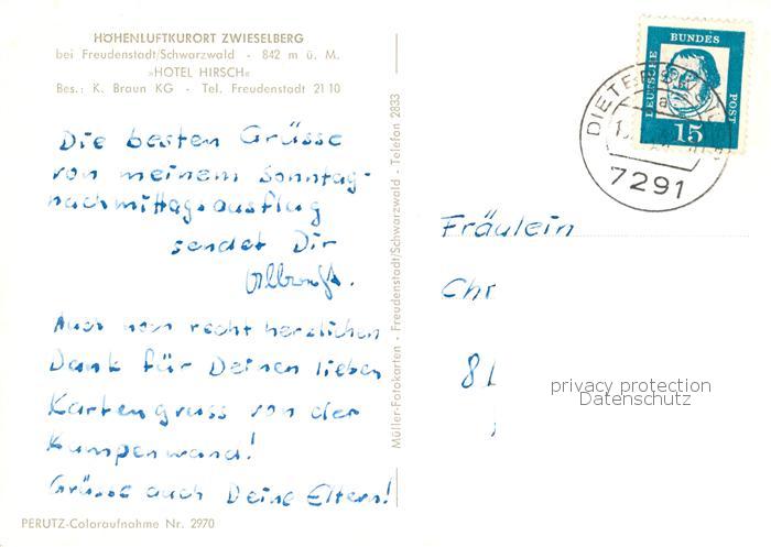 73845837 alte Postkarte Zwieselberg Freudenstadt Hotel Hirsch Hoehenluftkurort im Schwarzwald Winterlandschaft postalisch gelaufen Erhaltung siehe scans [FriedD77] KatCode: 11110008237028