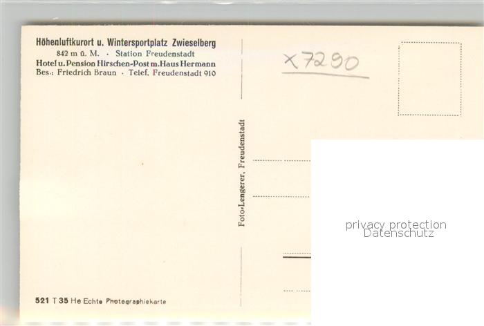 43276541 Zwieselberg Freudenstadt Hotel Pension Hirschen Post mit Haus Hermann Kurort Wintersportplatz Schwarzwald postalisch nicht gelaufen Erhaltung siehe scans [FriedD77] KatCode: 11110008237028