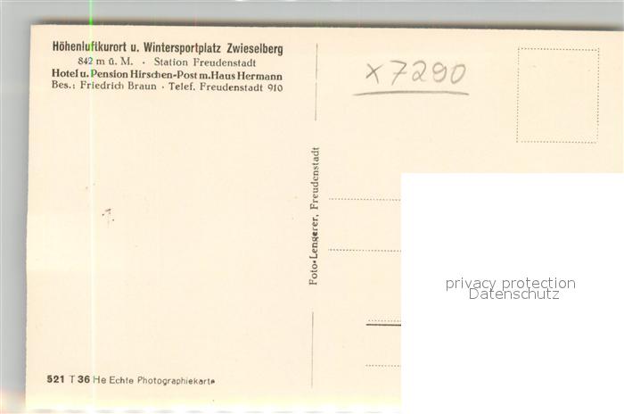 43276547 Zwieselberg Freudenstadt Hotel Pension Hirschen Post mit Haus Hermann Kurort Wintersportplatz im Schwarzwald postalisch nicht gelaufen Erhaltung siehe scans [FriedD77] KatCode: 11110008237028