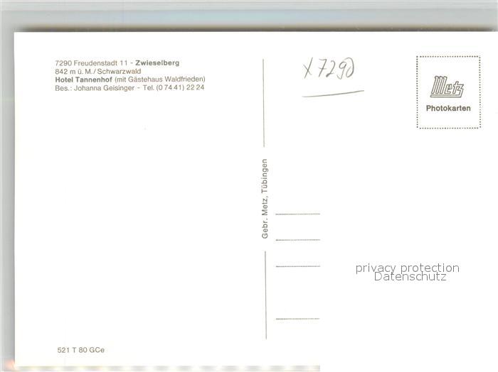 43273429 Zwieselberg Freudenstadt Hotel Tannenhof postalisch nicht gelaufen Erhaltung siehe scans [KathaD81] KatCode: 11110008237028