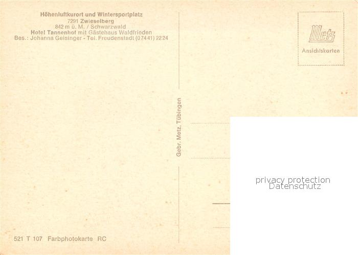 73685052 Zwieselberg Freudenstadt Hotel Tannenhof mit Gaestehaus Waldfrieden im Schwarzwald postalisch nicht gelaufen Erhaltung siehe scans [FriedD77] KatCode: 11110008237028