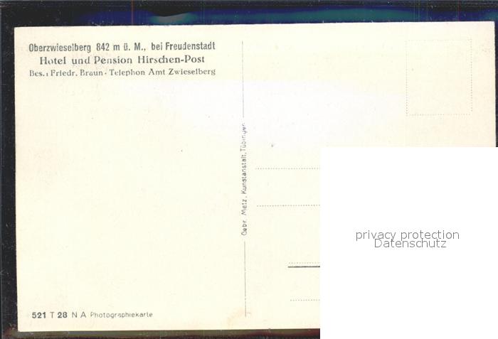72099122 Zwieselberg Freudenstadt Hotel und Pension Hirschen Post Unterzwieselberg postalisch nicht gelaufen KatCode: 11110008237028