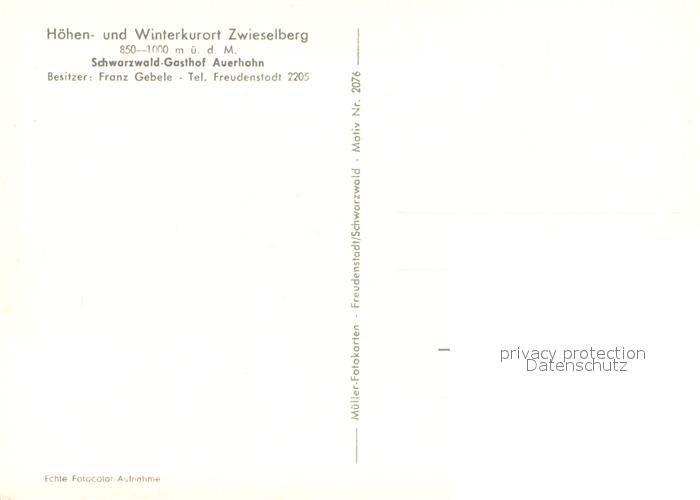 73641280 Zwieselberg Freudenstadt Schwarzwald Gasthof Auerhahn postalisch nicht gelaufen Erhaltung siehe scans [WerneD78] KatCode: 11110008237028