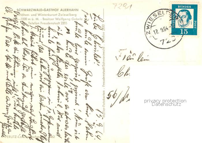 73641598 alte Postkarte Zwieselberg Freudenstadt Schwarzwald Gasthof Auerhahn Hoehenluftkurort postalisch gelaufen Erhaltung siehe scans [FriedD77] KatCode: 11110008237028