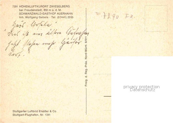 72818564 Zwieselberg Freudenstadt Schwarzwald-Gasthof Auerhanh postalisch nicht gelaufen Erhaltung siehe scans [NatalD47] KatCode: 11110008237028
