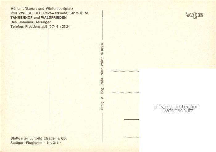 73322934 Zwieselberg Freudenstadt Tannenhof und Waldfrieden Fliegeraufnahme postalisch nicht gelaufen Erhaltung siehe scans [WerneD78] KatCode: 11110008237028