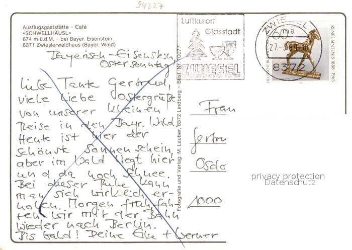 73648706 alte Postkarte Zwieselerwaldhaus Ausflugsgaststaette Cafe Schwellhaeusl postalisch gelaufen Erhaltung siehe scans [WerneD78] KatCode: 11110009276148