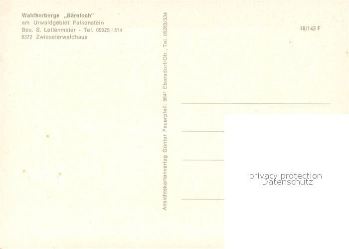 73654700 Zwieselerwaldhaus Waldherberge Baernloch am Urwaldgebiet Falkenstein Bayerischer Wald postalisch nicht gelaufen Erhaltung siehe scans [FriedD77] KatCode: 11110009276148