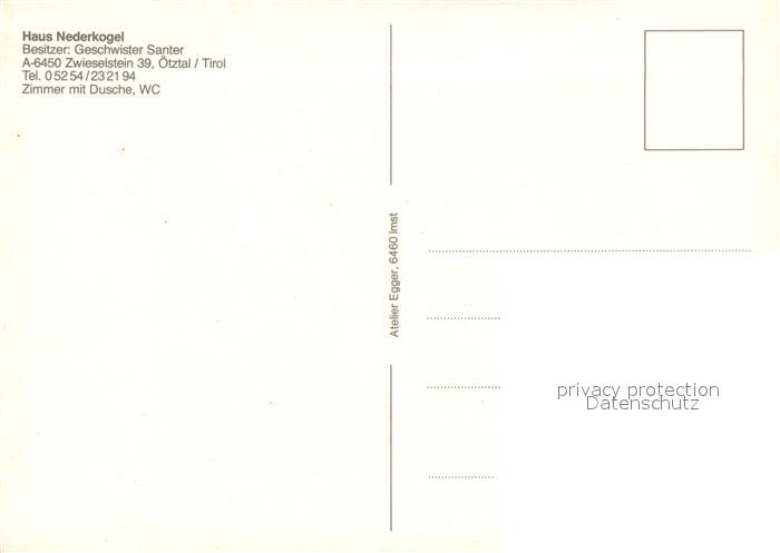 73085836 Zwieselstein Soelden Pension Gaestehaus Haus Nederkogel postalisch nicht gelaufen Erhaltung siehe scans [FriedD77] KatCode: 11390334070220
